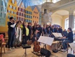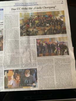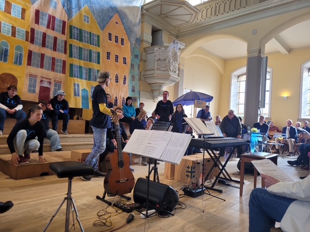 Am 06.04.2025 fand in der Michaelskirche in Eberbach die Premiere des musikalischen Theaterstücks „Engel in CC“ statt. Der MobilTON Chor der Lebenshilfe e.V. trat unter der Leitung von Annette Beichert mit Liedern von Marius Müller-Westernhagen, Peter Maffay, Nena, Kerstin Ott, Enya u.a. auf.